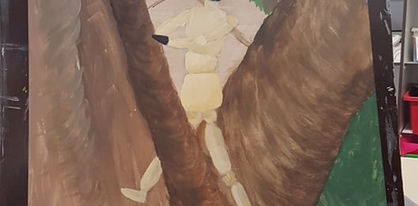 Ik heb vervreemding gekozen daarom is er een vreemd element (het poppetje) in het schilderij.
